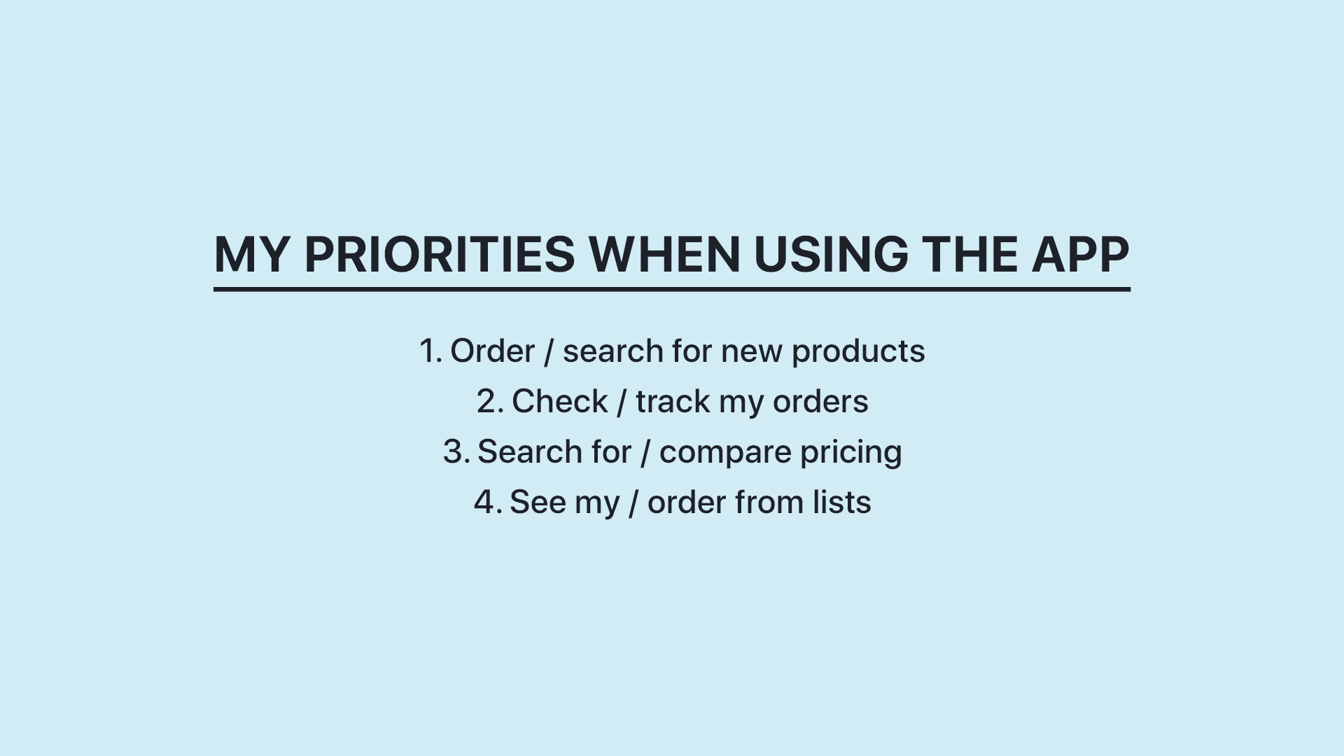 Once I had all of the design elements I needed and colors and fonts I’d use, I began making notes of the things I’d improve in the Amazon app. I took into consideration the functions / features I use most. I then used these to build a visual hierarchy.
